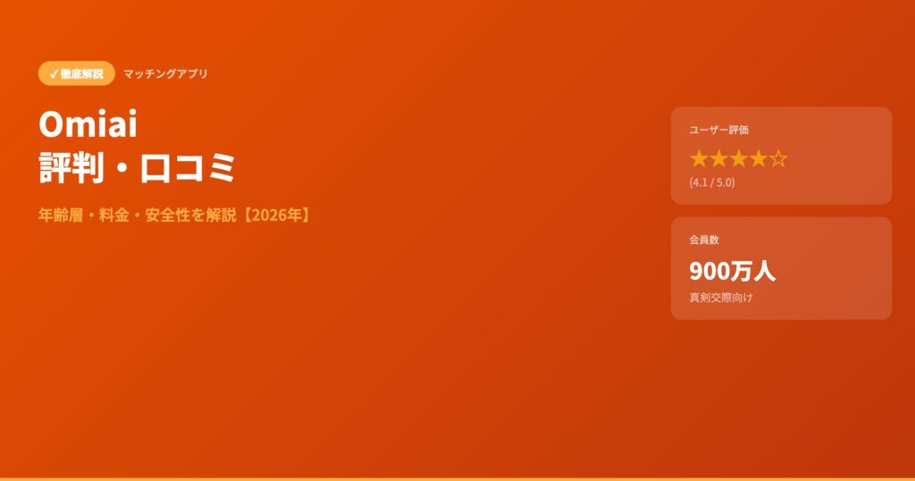 Omiai(オミアイ)の評判・口コミを徹底調査!良い口コミ・悪い口コミの両方を紹介し、料金・年齢層・安全性をわかりやすく解説。Pairs・with・ゼクシィ縁結びとの比較表付き。2026年最新版。 マッチングアプリ